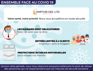 Face au coronavirus, nous sommes tous concernés pour éviter la propagation du virus. Chez Comptoir des lits, nous avons ré-ouvert nos portes lundi 11 mai, en prenant toutes les précautions nécessaires pour vous protéger tout en préservant notre équipe. Tour d’horizon de nos actions.